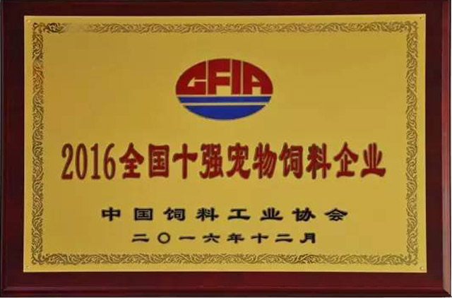 2016年12月9日,中國飼料工業協會第七次會員代表大會在北京召開,會議對2016年度中國飼料工業協會先進集體及先進工作者進行了表彰, 華興公司榮獲“2016全國十強寵物飼料企業”稱號。
