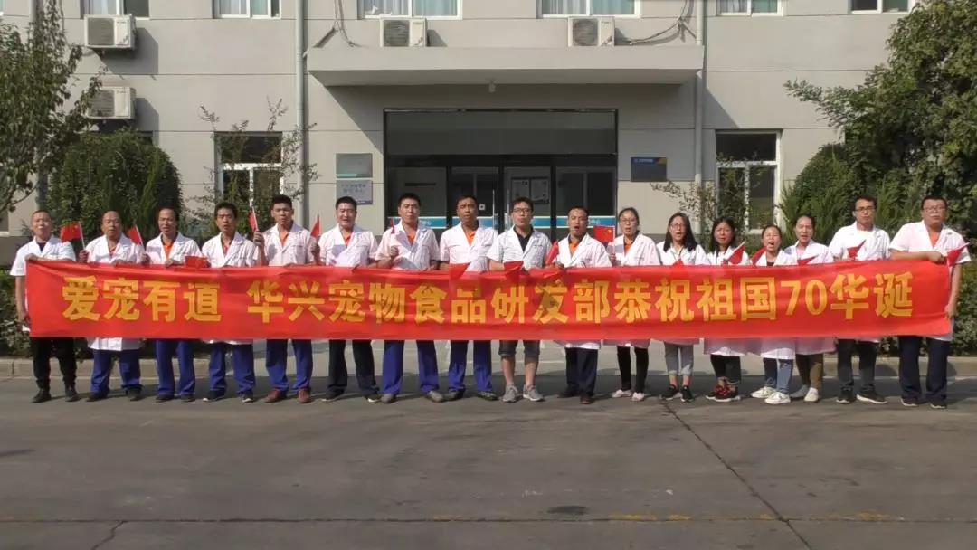 伴著歌唱祖國的激昂旋律,由華興寵物營養(北京)研發中心,華興(杭州)網絡營銷公司,華興設計學院,華興寵物食品有限公司各部門聯合發起,共同舉辦的獻禮新中國成立70周年祝福活動,在各下屬機構隆重舉行! 華興寵物全體員工 恭祝偉大的祖國七十華誕! 祝愿祖國繁榮昌盛!國泰民安!
